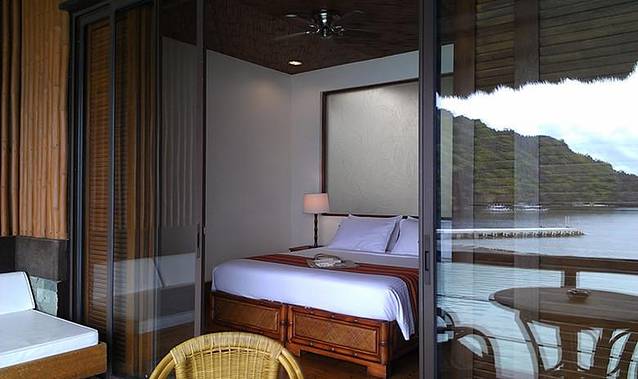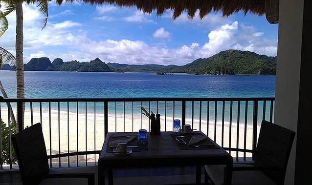 Miniloc Island Resort已经有30年历史了,是El Nido下除了Lagen Island外另一最受欢迎度假村。岛上共有50间房(6种房型),房费套餐包含酒店提供的十几种免费活动以及三餐自助餐,岛上提供乒乓球,沙滩排球,桌球,kayak,门口的海域还可以直接snorkelling,甚至潜水。淡季入住的人不是很多,入住时每间房都有一个coordinater会负责你入住期间大小行程的安排,完全可以翘起双手等吃喝玩乐。度假村的经理Dondon已经在酒店工作了10年,人非常热情,把我们房间升级到44平的高级海景房,房间很大,景观也一流。重点是每天都可以在阳光和大海的召唤中醒来。