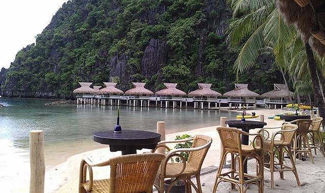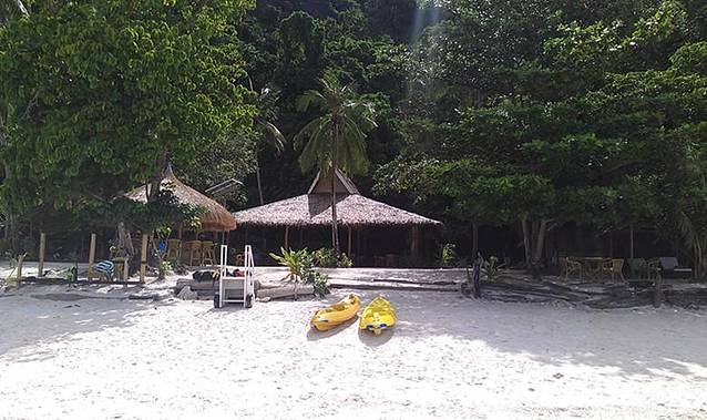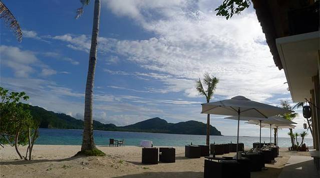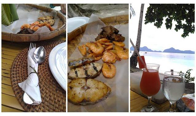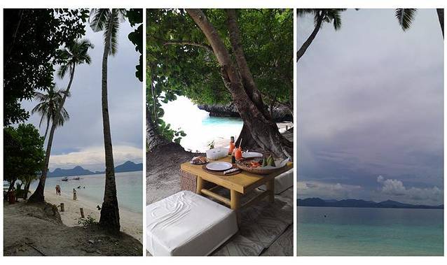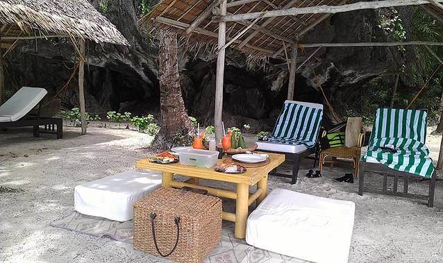 大小泻湖之后,直接搭乘螃蟹船到度假村旗下另一个海岛Entalula Island上的俱乐部享用海滩野餐。这个岛也是度假村作为club beach使用,岛上提供免费的一系列水上活动(kayak,wind-surfing,snorkelling等),同时有餐厅提供海滩野餐。岛上工作人员会在沙滩上,摆放好用餐桌子,同时将食物美美地装盘,餐饮的食物以系列菜式为主(前菜沙拉,肉类提供鱼虾及铁板牛肉,牛肉嫩而多汁,主食有米饭、面包及蛋糕,分量可以根据自己需求增加)。午餐后,躺在沙滩椅上,美美地享受海风的抚摸,安静地睡一觉,尽情地享受“无人岛”的私人时光。最后3点搭乘度假村穿梭螃蟹船回Miniloc