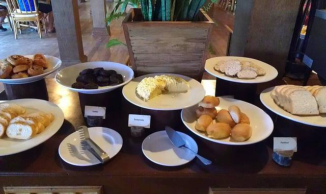 主页君前一天潜水累着了,而且转移P岛之后,就想剩下几天在P岛好好休息——就是所谓的吃吃睡睡!所以睡到闺蜜浮潜回来才起床。洗漱完毕,整理一下,到餐厅享用更丰盛及美味的自助早餐。pangalasian的自主早餐的品种也非常丰富,档次也略为高一点点。餐厅也是面朝大海,因为在二楼,所以视野更为广阔,同时因为入住的客人更少,用餐时更宁静。