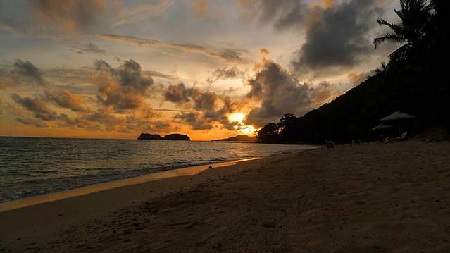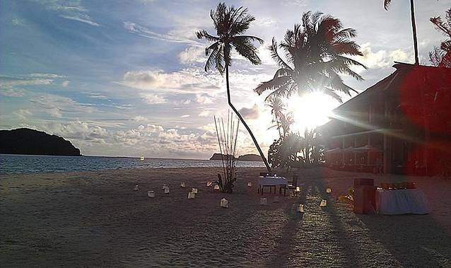 跳岛回来后,坐在度假村的沙滩边,小酌一杯,一边欣赏日落,一边稍作休息。此时是吧台的Happy Hour,指定饮品可以买一送一。每天最享受这样的时刻,因为岛上没多少人,难得宁静,感觉时间就在你的酒杯里停留了一样。