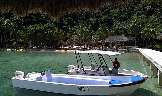 午餐后,pangulasian的快艇早早到达到miniloc码头,我们的行李又被妥善地安排上了快艇,在Miniloc热情的歌声中,我们奔向pangulasian岛。到达时,总经理及一众工作人员早早在沙滩上等待。guest coordinator递上湿毛巾和欢迎饮品,总经理一轮寒暄之后,coordinator开着电瓶车送我们到我们的villa,沿途介绍酒店的各种设施,到达房间后还很细致地介绍了房间设施的使用,非常周到。