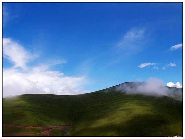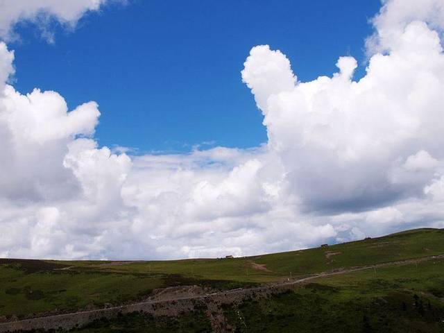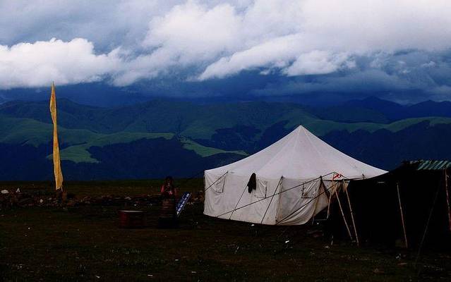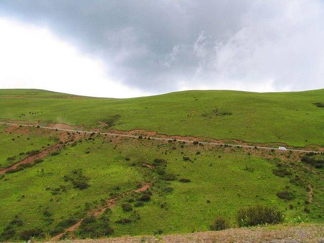 背包里一直藏着那本翻烂的脂砚斋,原为打发漫长而沉闷的旅途。我的阅读很大程度是在旅途中完成的,像《这就是纽约》《重游缅湖》《源氏物语》……。但是这些天,我一次也没有动它,因为根本没有机会和时间想到看书。高原的气候变化极快,东边下雨西边晴的状况是最常见不过的。一路被雨追赶,或者我们把雨抛下的感觉也是令人愉悦的。我们一天要换四季的衣服,这样的气候条件下,即使你重走来时的路,也丝毫不会有审美的疲劳。无论是阳光灿烂还是乌云密布,它都美丽得令人惊叹。也许你正沉醉在前方的佳景,就在突然回首的刹那,你又会惊呼身后是一幅多么雄奇的布景,那硕大的天幕衬着我们小小的车,疾驰在地平线上,一定是一道美好的风景吧!