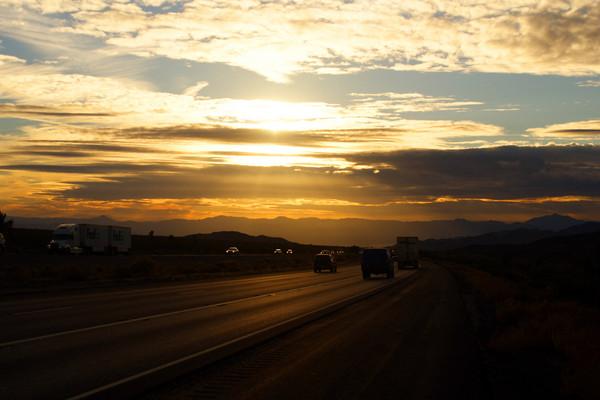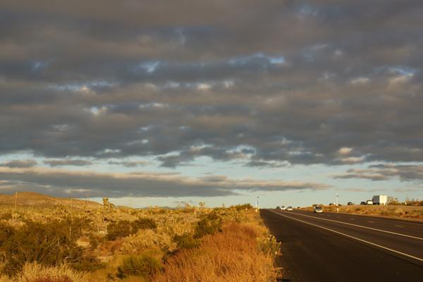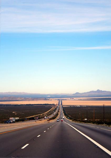 这是一个在沙漠中创造的奇迹,从洛杉矶开往拉斯维加斯的路上,多数笔直的公路两旁都是荒芜的沙漠,岩石,枯黄的野草,公路一眼望不到尽头,周围单调的景象,让你开起来会越发的疲倦。