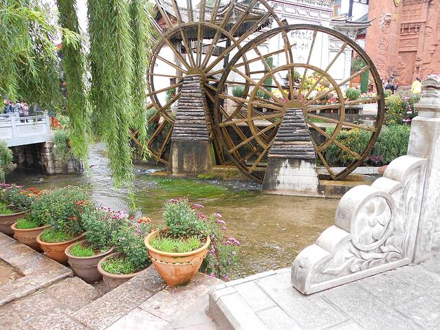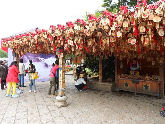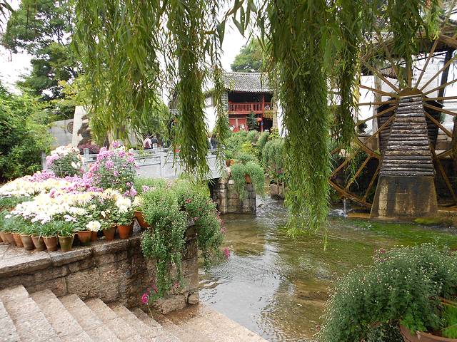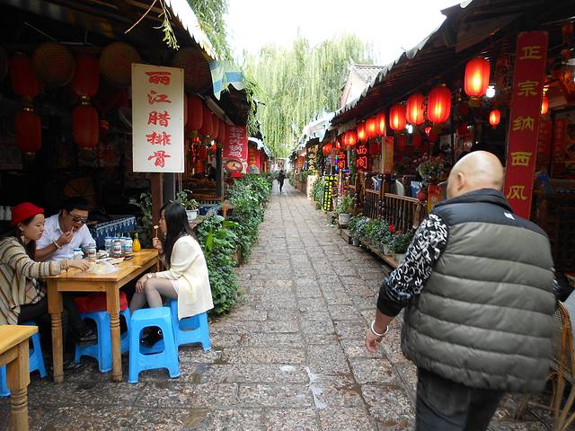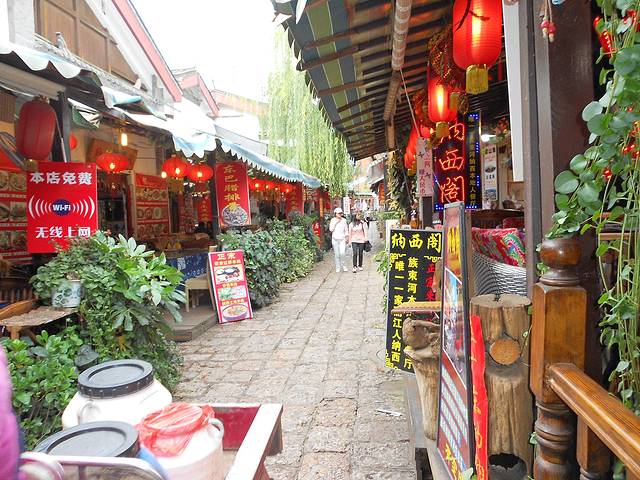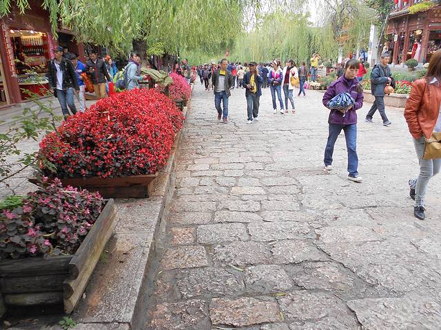 上午在客栈休整了一下,中午在路边吃了份砂锅米线,还是蛮正宗的。下午开始逛古城的街道胡同。除去摩肩接踵的**和商业性逼人的小格子铺。丽江的青石板小路,淡雅别致的小店,悠扬的本土歌谣,无处不在的清澈流水还是很吸引人的,很有韵味。而且正值国庆,到处都是各色鲜花,很养眼。 对于 爱购物的尤其是喜欢小情趣的姑娘这里就是天堂啊,绝对不虚此行,不过要理智消费啊。