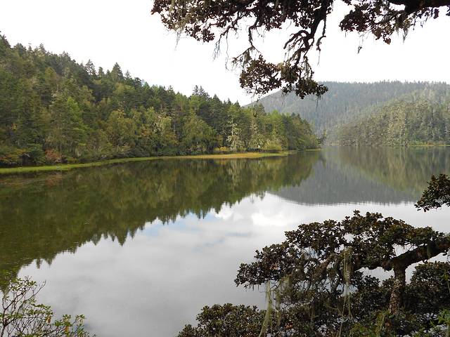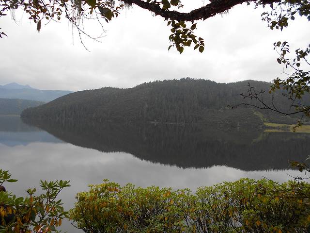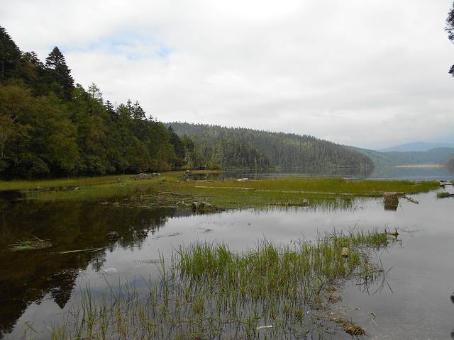 早上六点起床,天不亮就出发,看到了美丽的高原日出。草原上藏人起的很早,大片大片的牦牛在低头吃着带着露水的嫩草,山林间有淡淡薄雾。八点左右到达普达措,气温很低,都穿上了羽绒服,是旅行社免费借用的,还一人附带一瓶氧气。全程分三段,可以徒步可以乘车,不过身体不是特别特别棒的最好选择一段或两段徒步……高原反应伤不起啊。在高原上爬一节石梯像爬好几层楼啊