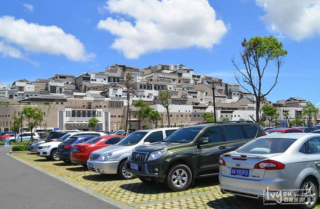 下车一看~哇!!!天好蓝啊!风吹得好大,吹走一路的疲劳,换来精神焕发。后面建筑简直像”布达拉宫”.~~~