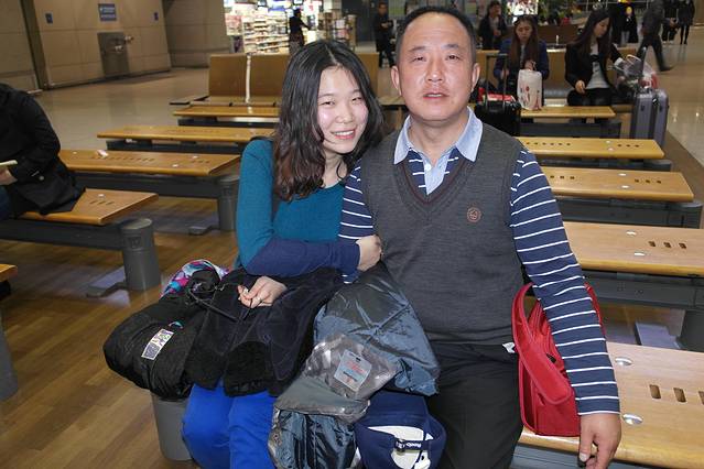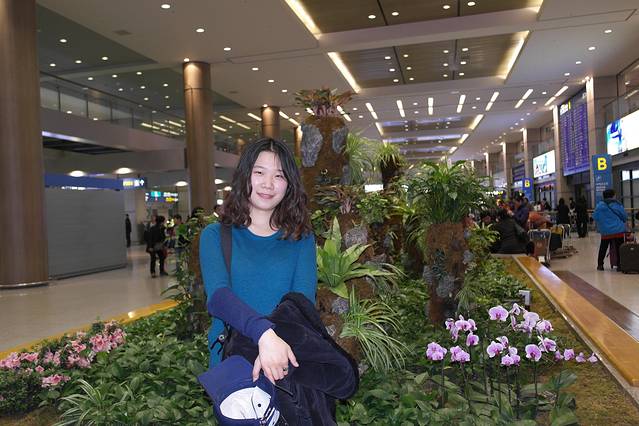 由于这次是带着爸妈游走,所以选择了跟团的便捷旅行方式。晚上七点多的飞机,但由于要办托运、安检、过关等事宜,所以三点多就到机场集合了。一切都进行的非常顺利,集合地点是T2航站楼2层国际出发2号门口邮局处。旅行社的领队举着醒目的牌子等待着我们,待人齐后,点名分组,讲韩国旅行事宜,兑换韩币、购买充电器转换插头(话说我的插头就是在负责人手里买的,很好用20元/个)。办理完所有事宜就happy的等待着候机啦!在飞机上的心情自然不言而喻啦,期待思密达许久的心情~~2个多小时的愉快飞行结束,就这样到达了思密达。(实际飞行时间只有一个多小时)。到达韩国仁川机场后,我们就跃跃欲试了,在机场开心的各种拍。