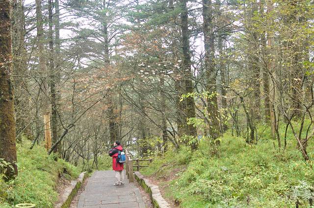 经过2H的山路,到达雷洞坪,下车就意味着我们要步行上去了,听说要走2H。这里感觉到很冷了,我们租了大衣,25大元。来山上,肯定要爬山才意思啦,不坐索道上,于是就慢慢往上爬了,