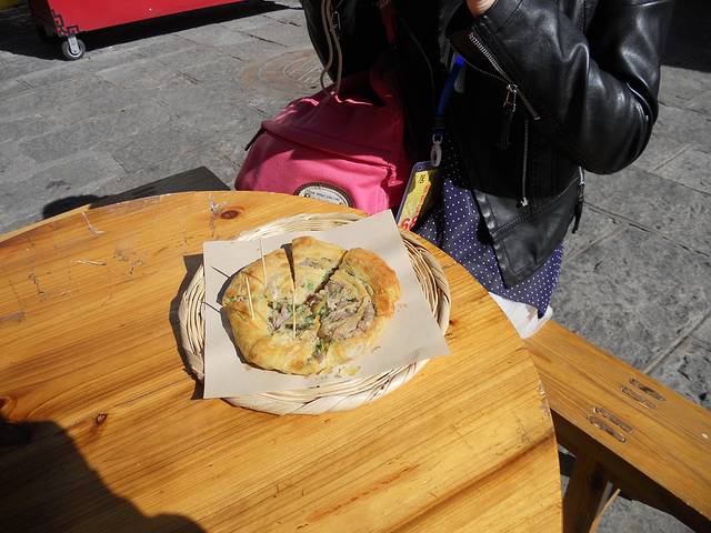 包含在套票内(¥60),进入里面。里面有导游会带你参观。会让你品尝三道茶(会向你推荐茶叶,不想买可以不理会),以及看表演。喜洲很小,吃了里面有名的粑粑,我们买了一个咸味的,还不错。8元