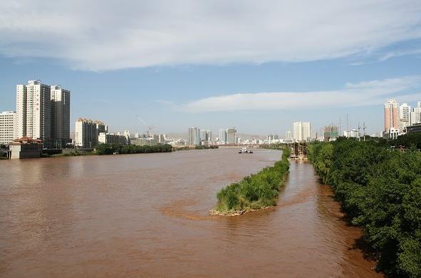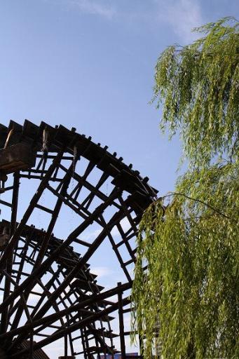 我们在宾馆门口坐了部公交车,来到了黄河边 黄河边修的很漂亮,有水的城市果然会大做文章! 大水车,10块钱的门票,我们没进去,就在栏杆外看了看 这水果然很黄啊!