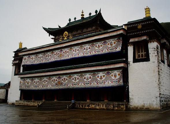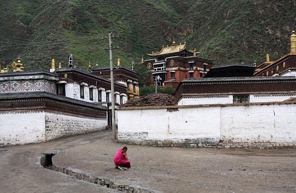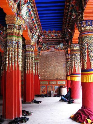 似乎不下雨了,我们再次步行回到拉卜楞,发发呆,听听阿克们的早课,很神秘的力量。。。只要不去打扰他们,就不会来赶我们走 早上是没有人来查票的,可以随意走动。