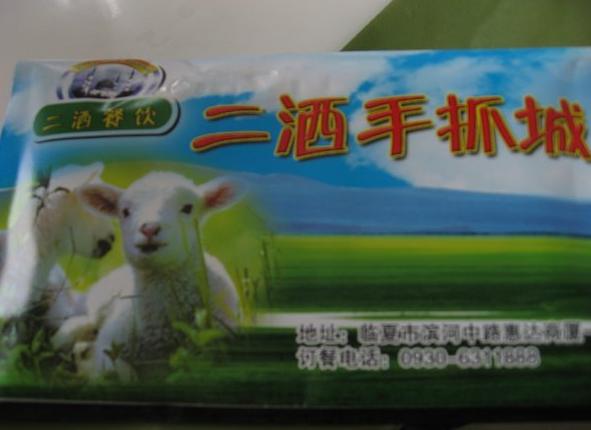 环境很棒,据说是兰州市内比较著名的园林式餐厅,有露天座位。 那天的天气相当好,蓝天白云还有斜斜的夕阳,微风轻轻的吹,我们当然就挑选了露天的座位,靠着一棵大树,摆开了长桌,来壶白酒,点上手抓,FB的旅程正式开始拉!这里生意暴好,一会居然要排队了。兰州真是个日不落的城市,晚上8点了太阳还在线呢!这里最招牌的么当然就是手抓了,还有黄焖的据说也不错,那就各来一斤,另外再点些其他的牛羊肉和蔬菜!羊肉的价格大概38一斤。 第一个上来的就是手抓!啊哟喂!吃过以后才知道,上海是根本吃不到如此新鲜美味的羊肉的!甘南的草原上,羊儿都是散养的,吃最自然的青草,喝的是雪水,偶尔还能吃到冬虫夏草,从来不吃激素饲料