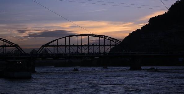 美丽的夕阳和大桥 很快我们就到岸了 后来我们在黄河母亲像前集体凹造型,引来了兰州市民的围观。。。