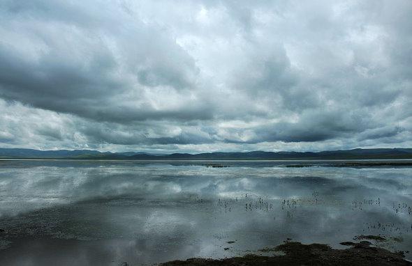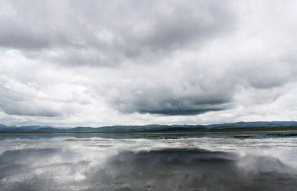 第一眼尕海湖。。。 我们惊呆了!!! 云卷云舒。。。如镜的湖面。。。 感叹于大自然的神奇~~~ 一种很静谧的美,有点点忧郁。。。