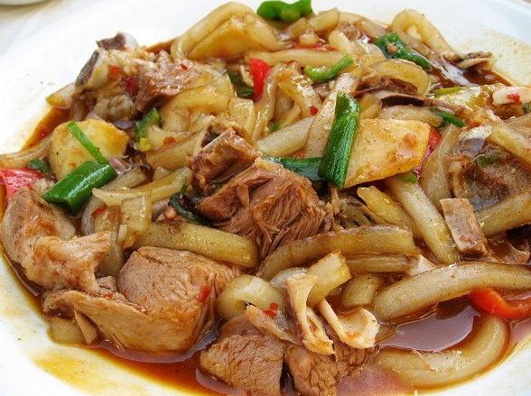 中午在一个清真餐厅里吃的水煮烤鸭 就是把烤鸭浸在辣的汤水里。 抢光~~~~~我们这群人都是肉祖宗。。。。