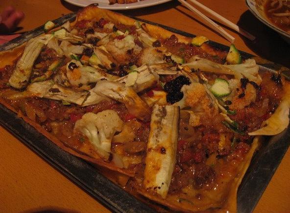 PIZZA的酱料是甜甜的,上面好象都是蔬菜类的,具体是什么也看不清楚,很好吃!口感湿湿的,但是底又是脆的!现在回想起来还真是不错!!!