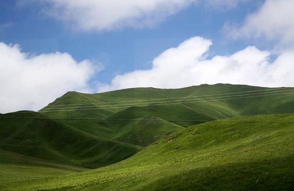 小山坡绿茸茸的,感觉象是撒满了抹茶粉的甜点。