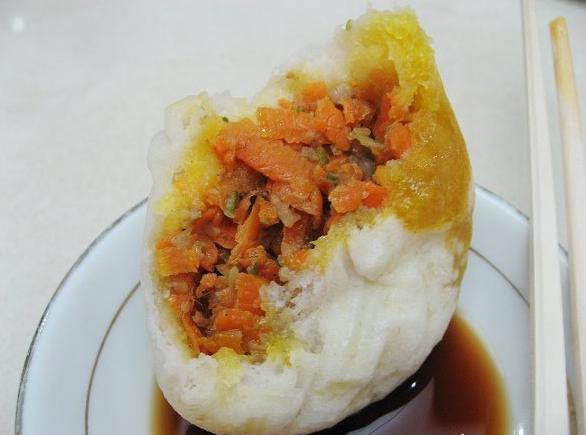 听说这里的包子非常嗲,虽然大家还很饱,但我还是带大家进来了。12元,8个人,吃了1笼羊肉胡萝卜,还吃了1笼菜包。 我们自己都觉得不好意思,还好人家没把我们丢出去。 我们也不喝店里提供的水了,别浪费人家的杯子了。 白白的包子来了,胡萝卜羊肉的看起来很诱惑,黄黄的汤水已经渗透到包子皮外,看起来跟蟹粉小笼差不多!