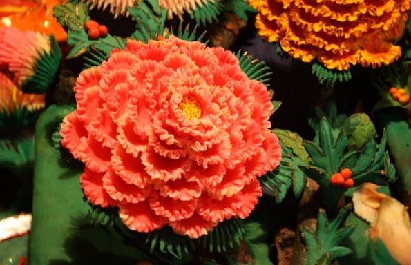 酥油花它是用酥油作原料造出的各种佛像、人物、山水、亭台楼阁、飞禽走兽、花卉树木等艺术精品,需要在极其低温的条件下手工制作。
