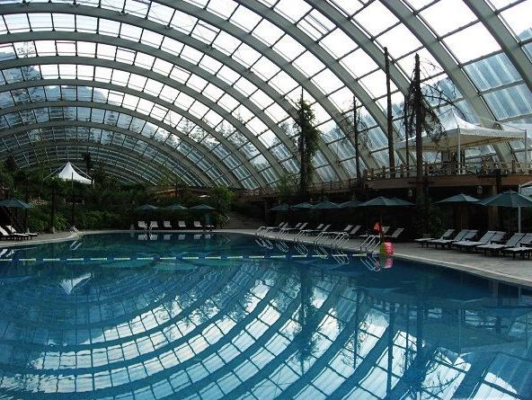 也~~~~我们终于到拉!!! 前几天住的差,洗澡也没好好洗,就是因为想着可以到天堂里好好休整一下,按照亲哥的话来说就是洗他个五遍。。。哈哈哈哈。。。一边是游泳池,一边就是温泉。 120多块门票。。。我们觉得太辣手了,就没去。 听说好象住2晚以上可以送的。我们住1晚就只有自费了。 哼~~~ 不过好在我们想参观一下的要求还是得到了满足。 工作人员很热情的接待了我们,随便看,随便拍照。 里面哈热啊!!!走走就是一身汗。。。看来。。。大冬天,在这里泡着,看看屋顶上飘着雪花,望着远处的雪山。。。啊呀。。。无法淡定的YY下去了。。。