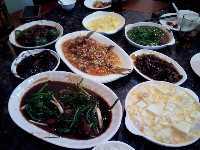 晚上从公司出来,走了几条街到了这家很有名的春餐厅~!很小的门面,在进贤路的路头和路尾各有一家店,这家店店里也就有个5-6张桌子,门外排队的人有好多,据说很多回头客都是冲着老板娘来的,老板娘很风趣幽默;几道点击率很高的菜:草头(最喜欢的)、酱板鸭、熏鱼、炒大排、炒猪肝......地道的上海黄酒,闻起来味很大,但是喝起来很淡,据说后劲挺大的~~