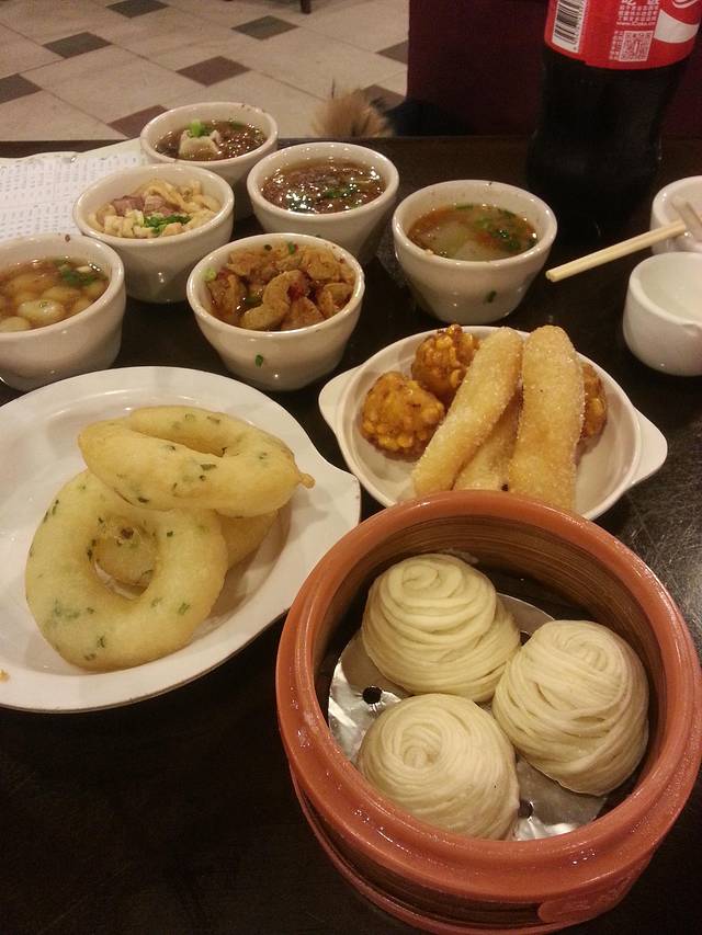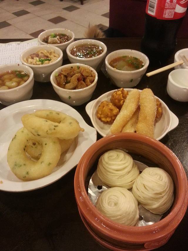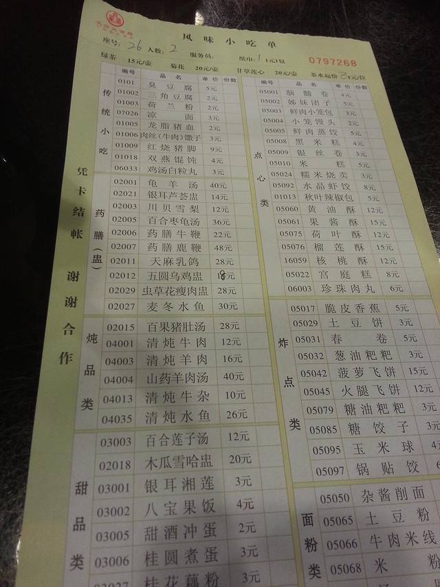 反正便宜,每个点点尝试下,负责的说——都很难吃,但里面看的还是有特色的,比如薯粉的做法啊。