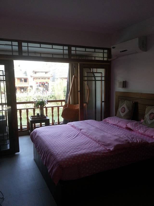 房间还行,位置较好靠古城的入口,房间有阳台,面靠沱江,有吊椅,但晚上好冷,开空调30度也好冷,最后问老板要2床被子!!!