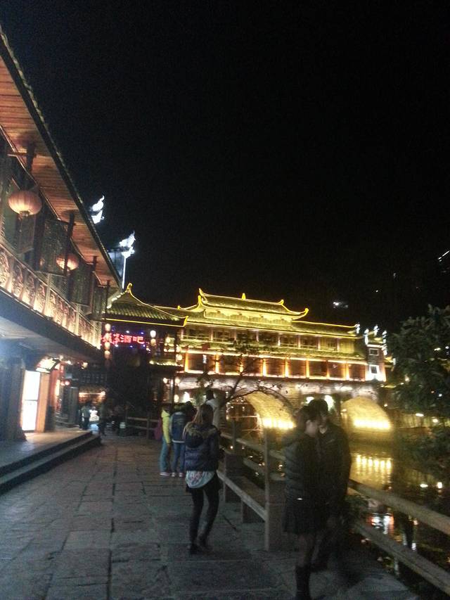 去前看攻略说凤凰个商业气息很浓了,不再是沈从文笔下那那个与世隔绝的村子,但是到了,也没觉得商业的多夸张啊,路边拉借苗服划船的大嫂们都是阿妹阿妹的叫着,相比全国各地“美女”这叫法亲切好多,一路跟随还热情的给你做着向导,告诉我们那是啥,杨家祠堂、陈斗南的历史,也弄的不好意思了,反正2姑娘肯定是要借苗服拍照过过瘾的,就借这阿嫂的了。借苗服有两种价格:多套服装(2元一套)+头饰和颈饰(新20元旧10元)实际借服装是假的,赚你钱是在头饰,可以砍价!! 套借10元一套。晚上去了<魅力凤凰>篝火晚会 40元,千万不要相信啥黑导游说搞到前排票,然后问你要50 60 ,贵啦!