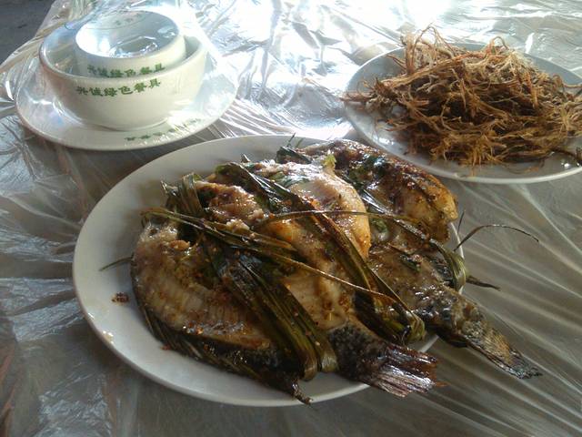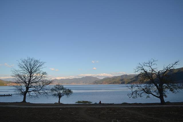吃晚饭的地方叫古玛火塘,位置很好,但非常坑,烤茄子、烤鱼、烤蔬菜味道都很垃圾,并且最后说要收5元/人的餐具费。餐具就是一双一次性筷子+一个纸盒子,如果早说餐具都这么贵,肯定没人愿意在这吃饭吧。实话实说,我们在泸沽湖吃的很不好,几乎是天天吃零食,到最后感觉方便面都无比美味,所以很多攻略上说去泸沽湖多带粮草还是客观的。