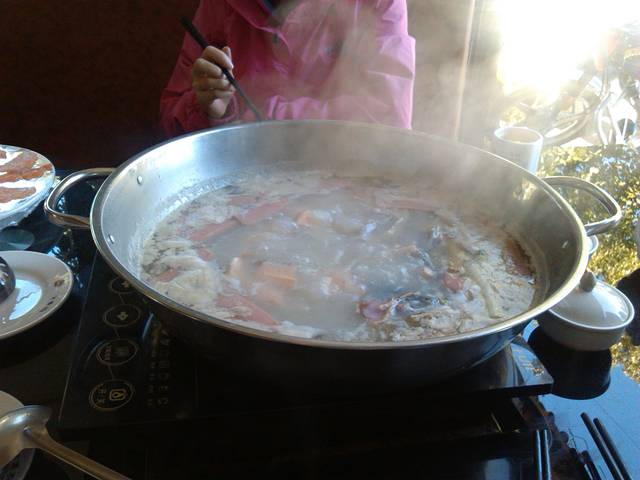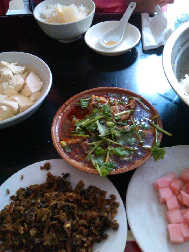 这是在网上评价极高的一家特色饭店,人也的确很多,味道的确很赞,从火车站打的过来大概一个起步费就够了。值得一提的是,拉我们来这里的出租车司机陈师傅人特热情,还告诉我们应该点多大的锅,点什么菜,热情的武隆出租车司机给人留下了良好的印象。陈师傅电话:13452514618