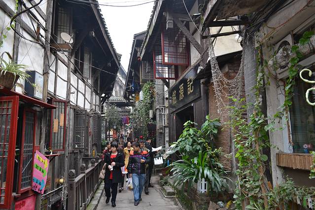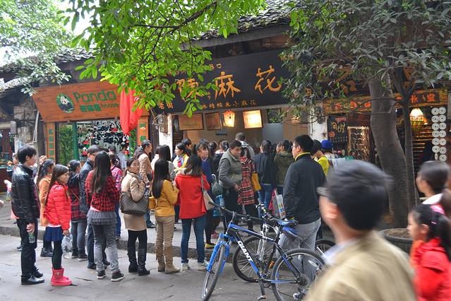 乘坐轨道2号转1号线到磁器口站。里面著名的小吃有陈麻花,张飞牛肉,油炸麻花鱼,毛血旺,千张,竹筒粽子等,虽然陈昌银麻花的名气更大,但奇怪的是,陈建平麻花的门口总是排起长龙,而陈昌银麻花一般不用排队,我对比了一下,两家店的味道的确不太一样,但是很难说孰优孰劣,只能说各有特色吧。