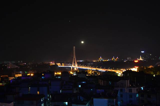 从吊桥出口出园就是勐仑镇。往前走到第二个路口右拐,一共约几百米就到了勐仑镇汽车站,回景洪。这次入住的阳光家庭公寓在夜市附近,酒店老板娘人非常好,酒店设施也相当齐全,免费电话、上网电脑,另外还能看到大桥的夜景。