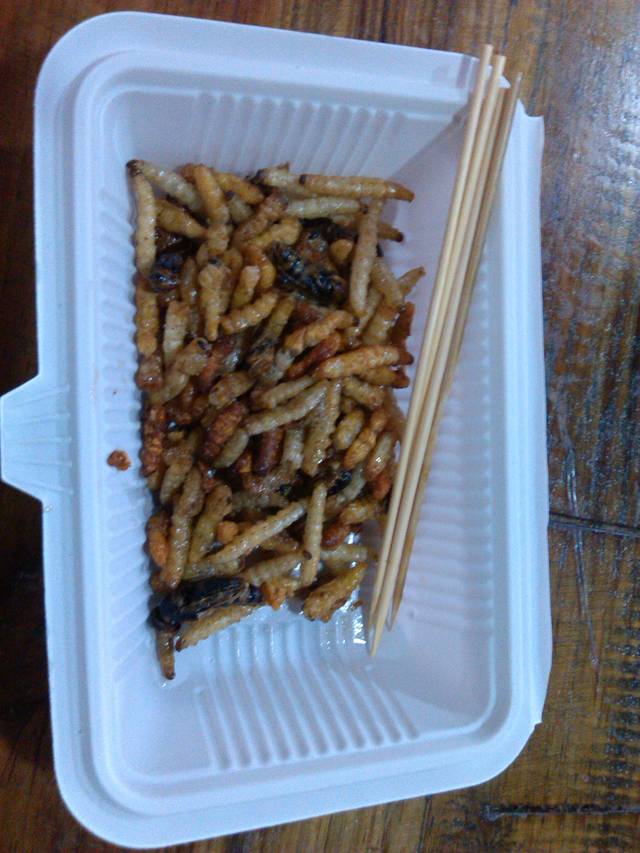 从如家步行半小时就能到大研古城,也就是人们常说的丽江古城。其实古城我去过的也不少了,丽江古城算是做得不错的,就是东西贵的要死,但是作为吃货,我依然甩开了腮帮子在这里大块朵颐。买牦牛米线赠送一碗菌汤,味道都非常赞。然后挑战了一下自己的心理底线,尝了尝昂贵的炸三毒。这东西是30元钱自由搭配,因为蝎子之前吃过就只点了蜂蛹和竹虫,味道真的太棒了。