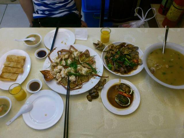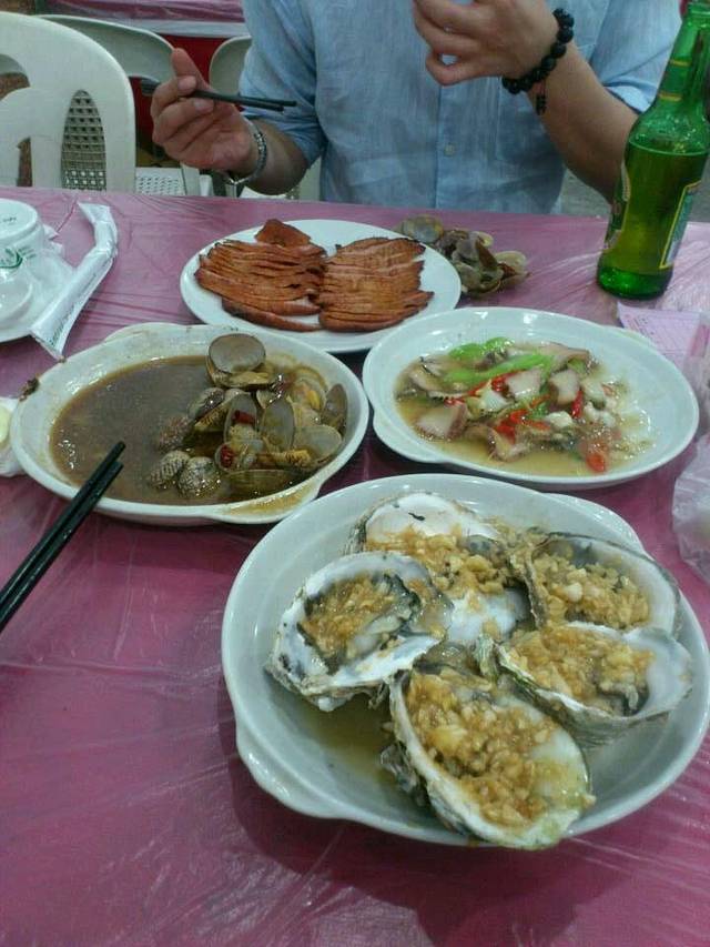 晚饭是朋友和网上大家都有推荐的小眼镜大排档。人爆满,要领号。吃了大龙虾、鲍鱼等美味海鲜。