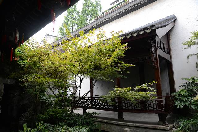 每人25块钱,我再一次踏入胡雪岩故居,园子里人不多,没有外面各种景点的喧嚣。门口开的正盛的凌霄花,非常美。静静坐在园子的亭子中央,看着戏台与湖水中多彩的鲤鱼,心里很是舒服。