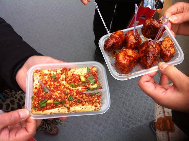 吃完蹄花继续走路到宽窄巷子,逛的感觉就像是苏州的平江路,不过餐厅虽多,小吃很少。在第三条井巷子里吃了蛋烘糕、鱼豆腐(和火锅里那种不同)、还有一个什么豆腐