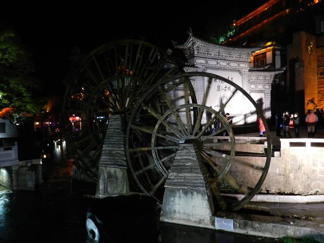 大水车是丽江标志性的建筑,在北门口,那里到处都是旅行团的,照相的。