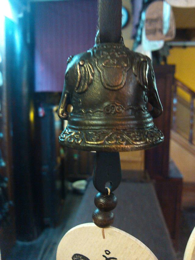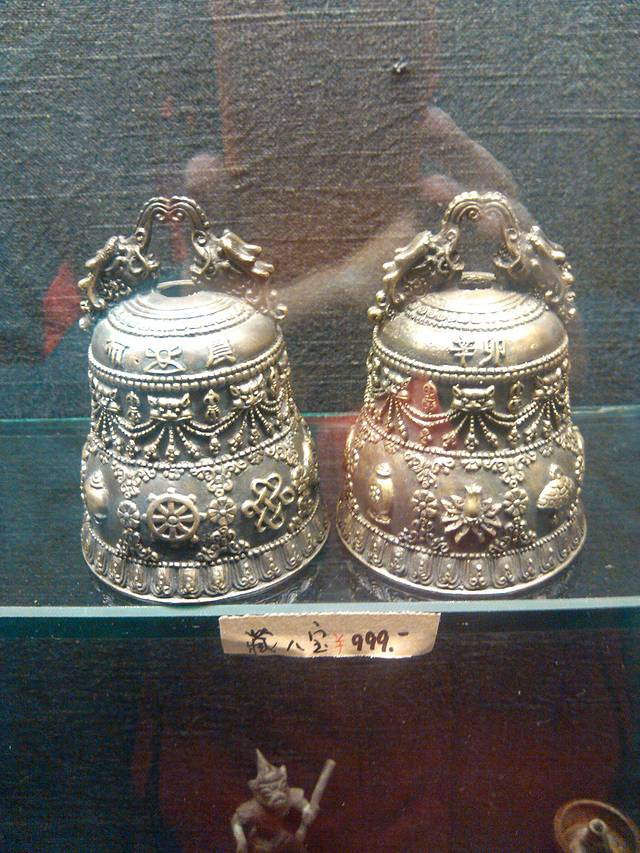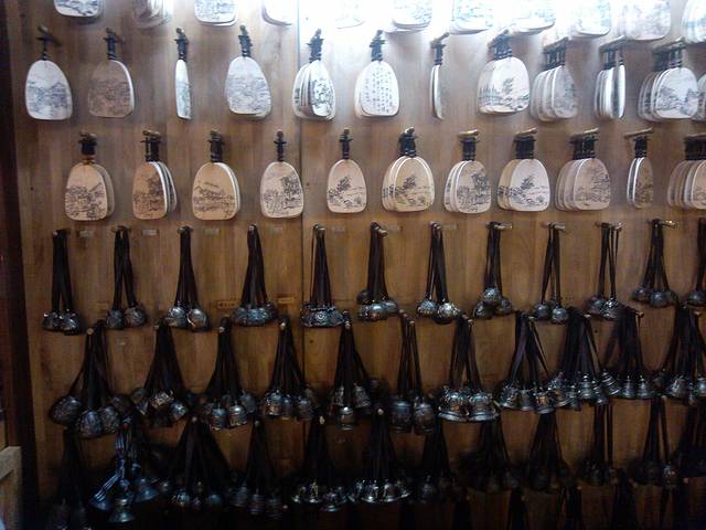 古城里卖各种铃铛的店很多,这家应该是最贵的了,但据说他家的每个铃铛都是纯手工制作的青铜铃。拿起来确实比别家的都要重,纹路也很精美,价格不菲。想买一对龙凤领,但又觉得小贵,就买了一个凤铃给LG挂在车里用。凤铃是190元一个。