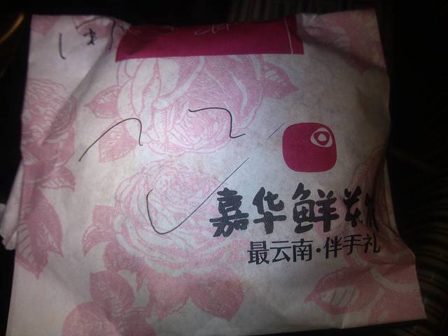 今天要离开丽江了,特意去四方街的嘉华店买了鲜花饼,正好搞活动,珍香饼第二袋半价,于是买了两袋,共48元。