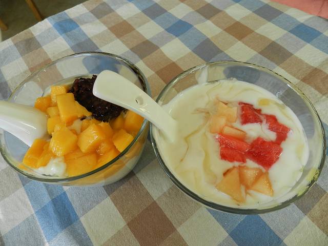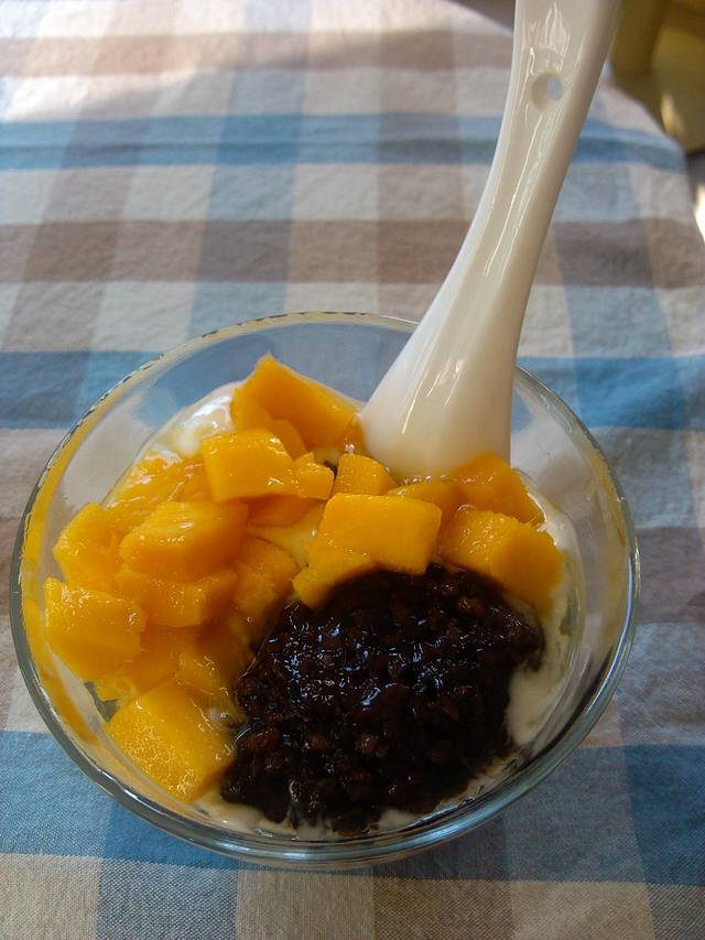 也是在玉几岛上,环境小清新,简单大方,点了特色的芒果黑糯米酸奶20,酸嬢嬢20,那个酸嬢嬢是用米酒和酸奶混合在一起,有点酒味,不是太习惯。