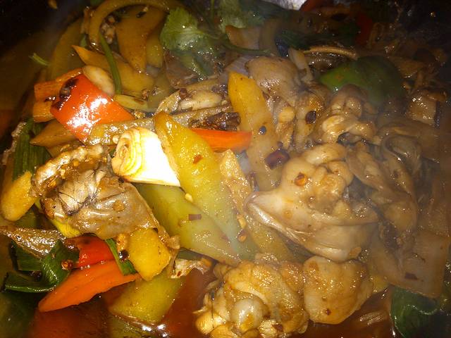 这家店环境还不错,但是相比起份量来说价格小贵,味道也一般。肉末茄子煲18,干锅牛蛙48,米饭6,碗筷2,一共74元。