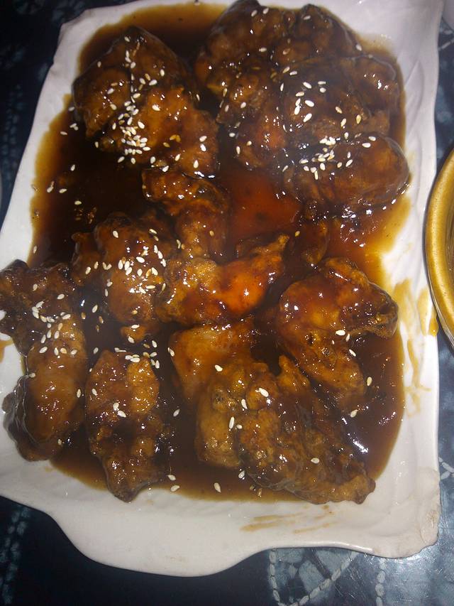 本来晚饭打算去呼声较高的苍耳春饭店的,结果去了以后发现环境太差了,典型的苍蝇馆子,而且菜单上也就那么几个菜,果断放弃,转而去了这家环境好一点的餐厅。不过环境虽然不错,价格稍微贵了一点,而且味道也一般。脆皮茄子26,砂锅杂菌38,糖醋排骨46,米饭5,碗筷2,一共107元。
