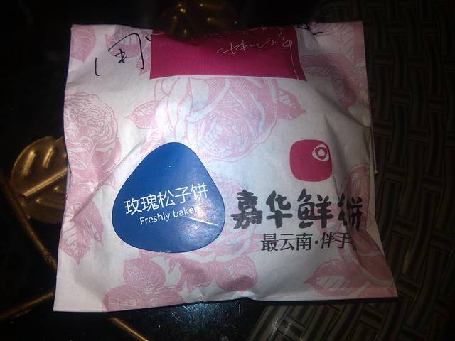 就在杨记乳扇的旁边,里面有现烤的鲜花饼和袋装的,现烤的比较好吃,但保质期是7天,包装的保质期是30天,可以买回去送人。我每样买了一个尝尝,经典鲜花饼3元,老婆饼3元,松子饼5元,蛋黄饼5.5元。最终觉得还是经典的最好吃,馅全是玫瑰花瓣的,吃下去打嗝都是玫瑰花味,嘿嘿
