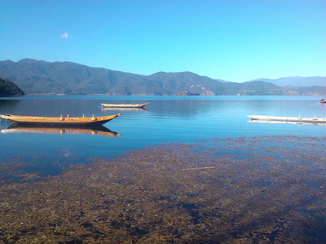从早上九点出发,经过了6个小时的崎岖山路,下午3点,终于达到了泸沽湖这个美丽的女儿国。门票是100元/人,如果有学生证或者是老人则是50元/人的,进门时司机会帮着统一买门票的。泸沽湖真的是很美,天是那么蓝,湖面上还有很多的水鸟,就是海拔比较高,有的人会有高原反应。