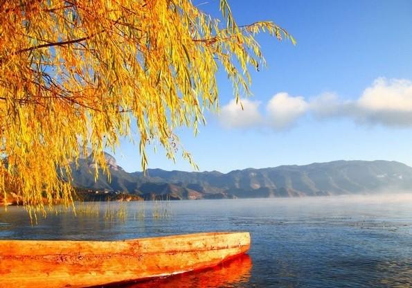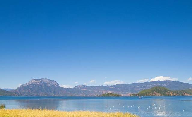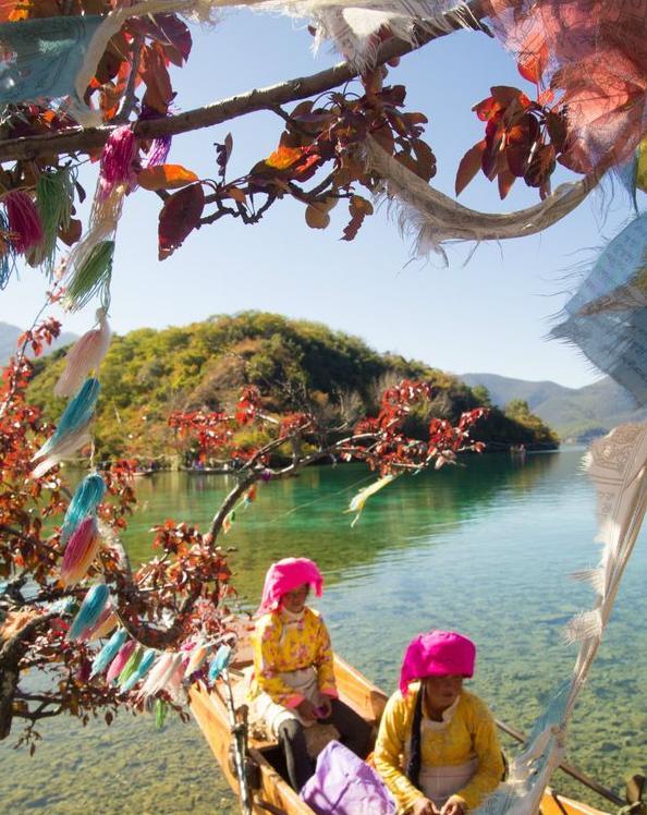 旅游专线的司机会带你去小码头,坐小船到里务比岛,可以选择不去,在岸上等待一个半小时。坐小船嘛,50一个人。怎么说,有好有不好啦,好就是能在湖上真切地领略泸沽湖的美,似走进了画卷里面。不好嘛就是撑船的姑娘会问你要不要绕岛一圈,经过四川与云南的交界(要加30一个人,我们砍价砍到20).如果船上大部分人都赞成,你就不能拒绝了,同在一条船上嘛。。毕竟大部分人都是想绕岛一圈的。