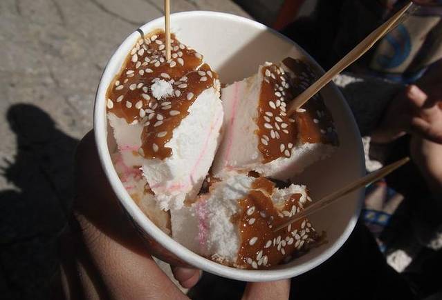 地人都不在祥云美食城那里吃的,太贵。有个伯伯卖的包浆豆腐倒是挺不错,4元一碗,豆腐外脆内软,蘸着豆汁吃非常的不错。