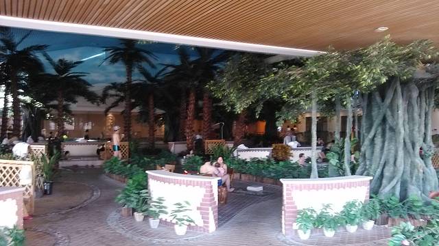 前台小姐给两个手牌,一个夹在鞋子上给换鞋的阿姨,穿拖鞋进去就OK了。找到自己的小柜子,换上泳衣,拿块浴巾就可以走进温泉的世界啦。大大小小二十个池子吧差不多。真心好玩。敷贴面膜真是爽歪歪。累了还可以坐在窗户边的桌椅上,边吃酒店提供的小甜桔子,边晒太阳,边看美女,哈哈哈