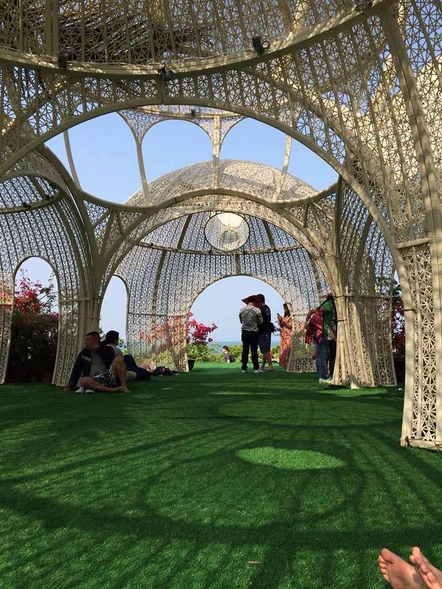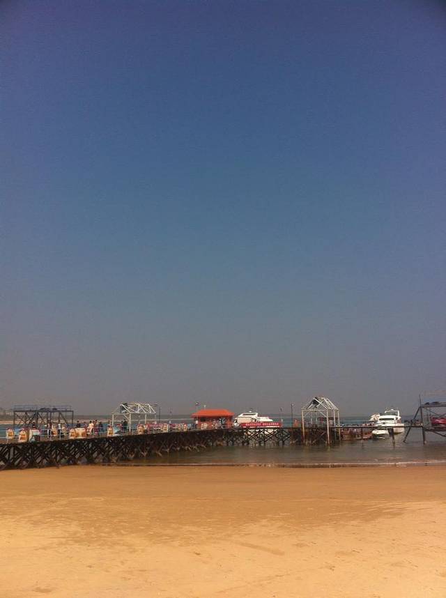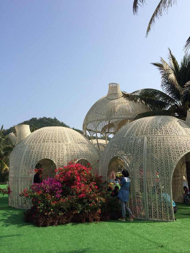 前期建议买好帽子拖鞋等沙滩行头,免得被岛上完全没有还价余地的50块拖鞋宰两刀,就像我们。吃了一盘毫无亮点的海南炒粉后开始享受阳光沙滩。20多度,下海微凉,个别人游泳。岛上除了观光风景,还有潜水、各种艇类项目,我们一律没有体验,无法提供感受。小岛虽小,一圈走断脚。我们小半天时间沿着岛的外圈走了半周不到,走累了可以到《私人定制》的大笼子里席地而坐,桥边接吻雕塑拱门和大爱心情侣和基友们不要错过,还有养着火鸡和孔雀的小动物园为小岛平添几分生机(但是工作人员,你们考虑过火鸡被和孔雀关在一起时的感受吗?)。