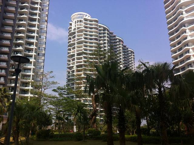 在大东海退了房,开着我们的小奔奔吭哧吭哧地穿越整个三亚市区来到这里。这是一个挺大的小区,叫美丽新海岸,在三亚湾海滩边,里面有酒店商家也有住户,每天都有零星业主或者住客裹着浴巾下楼到游泳池游泳。我们住的是途家斯维登酒店公寓(天猫有官方网店),房间零散地分布在各幢之间,从几十到一百来平方大小不等。双十一在淘宝上订的海景开放式套房,一晚三百不到。除了只有一条缝那么宽的海景之外,其他的性价比都很高。标准的60平方不到的单身公寓,除了电话机之外,一应俱全。亮点是,可以开伙。