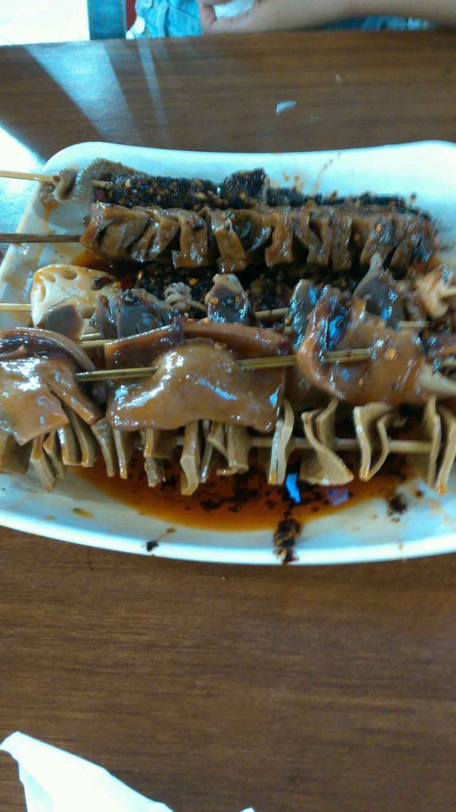 乘黑车到重庆已经五点多了,把东西拿到了提前预定好的酒店之后,赶紧利用剩下不多的时间去了解放碑。然而却没有什么看头!!!于是又去找有名的小吃街,选择了一个市场,两人吃了60块钱的,就是串串香,凉拌的!!!对这里不是很满意。